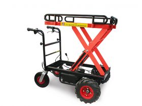 (株)ホームクオリティは、電動リフトを搭載した電動走行四輪運搬車「パワーキャットリフター(Power Cat Lifter)1020 / 1600」を発売した。