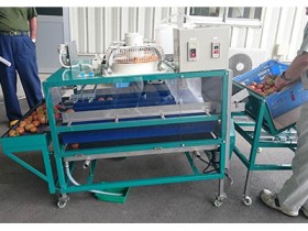(株)葉山ヒューテックは直径30~100mmのトマトを1分間で80個処理できる「トマト洗浄機」を開発した。同機はトマトを細霧で軽く濡らし、下り勾配に設けたロールブラシのレーン上で転がしている間に、表面の汚れを洗い落とす。…