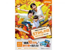 (株)スチールは、11月11日に開催する「STIHLの日」で、最高10万円の旅行券が当たるアンケートを開催する。