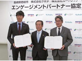 (株)クボタは8日、(株)ルートレック・ネットワークスと共に、スマート農業技術の導入を推進する長崎県壱岐市とのエンゲージメントパートナー協定を締結した。今後3者が連携し、壱岐市の特産品であるアスパラガスのハウス栽培のス…