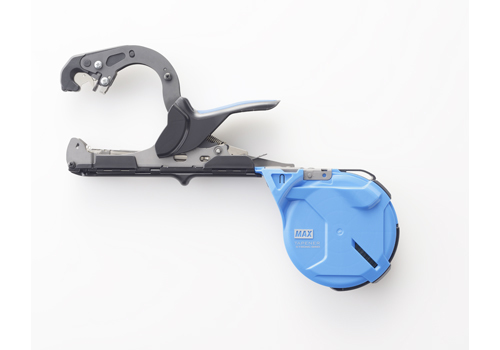 マックス(株)は新開発の専用テープ・専用ステープルの採用により、反発力の強い枝も強く保持し、手結びに比べ約3倍の作業スピードを実現した園芸用誘引結束機「強保持力テープナーHT―S45E」を12月23…