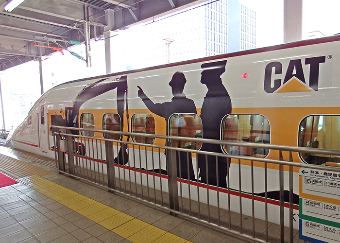 キャタピラー、ラッピング新幹線出発式