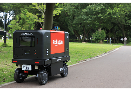 (株)本田技術研究所と楽天グループは、7月中旬から8月にかけ、筑波大学構内及び一部公道において自動配送ロボットの走行実証実験を共同で行った。実証では、ホンダの自動配送機能を備えた車台に、楽天が開発した商品配送用ボックスを搭載した自動配送ロボットが、筑波大学構内(一部公道を含む)の全長500mを自動走行した。楽天モバイルの通信回線を用いた遠隔監視も行った。動力源にはホンダの交換式バッテリー「モバイルパワーパック」を採用。充電を待つことなく配送サービスの継続が可能。今回得られた技術検証・データ収集・ニーズ把握を踏まえて、自動配送ロボットを活用した商品配送サービスの提供を目指し技術開発を継続していく。