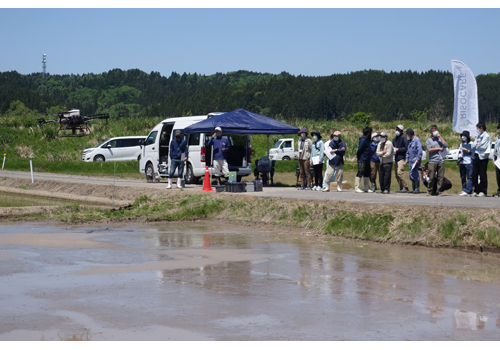 (株)セキドは、新潟県五泉市の渡辺農園(渡辺徹社長)の20アール水田において『完全自動航行ドローンによる湛水直播向けコーティング種子RISOCARE(リゾケアXL)散布実証実験を行った。当日はJAや農薬メーカー、農家など30人が参集した。新潟県下では初のリゾケアXLを使っての実証となる。今回はDJIの農薬散布ドローンであるAGRRAS T10が完全自動飛行しながらリゾケアXLの乾籾2・5kgを斜め対角線上にクロスするような飛行経路を組み、高さ2mを飛びながら『ボタン3回押すだけ』で合計10分で散布。また、クミアイ化学のベルーガ1kg粒剤を完全自動でABラインを通りながら5分で散布した。