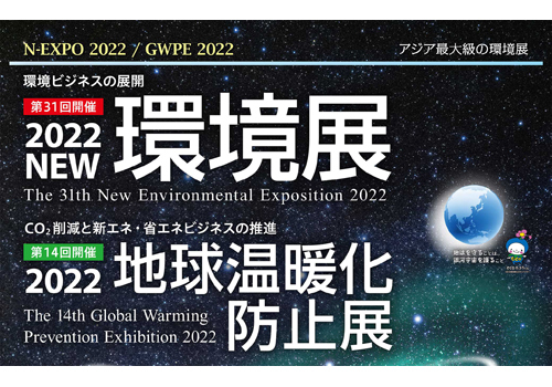「2022NEW環境展/地球温暖化防止展」=主催:日報ビジネス(株)、後援:環境省、経済産業省、国土交通省、農林水産省、文部科学省、東京都ほか=が5月25~27日の午前10時~午後5時(最終日4時)、東京都江東区の東京ビッグサイト東1~5ホールおよび屋外実演会場で開かれる。企業の社会的責任、環境との共生がクローズアップされる現在、環境汚染や地球温暖化、エネルギーの課題解決は避けては通れないものとなってきている。資源の有効利用や省エネルギー、再生可能エネルギーの活用、CO2排出削減技術などは、環境対策、温暖化対策にとって重要な取り組みとなっているが、両展ではこれら課題に対応する技術・サービスを一堂に展示。廃プラスチック問題解決のヒントやAI利用など最先端技術の展示、資源循環に欠かせない製品・技術や工法、企業の取り組みの紹介、脱炭素やカーボンニュートラル、省エネ、再生可能エネルギー、SDGsの取り組みに貢献する展示が行われる。入場料は税込1千円だが事前登録で無料に。