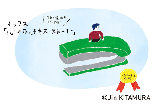 マックス(株)は〝あなたが今、心にホッチキスしたいこと〟をテーマとした第13回マックス「心のホッチキス・ストーリー」募集を実施する。文部科学省後援のこの企画は、毎回幅広い年齢層からの応募があり、第1回から数えて応募総数も10万人を突破。「今の幸せ」「家族の絆」「友だちとの思い出」など、いつまでも心にとどめておきたい思いや出来事などをショートストーリーにまとめ投稿してもらうもの。寄せられた作品は、厳正な選考で特に優れた1点を「マックス・心のホッチキス大賞」とするほか、「マックス・U―18大賞」として高校生の部・中学生の部・小学生以下の部から各1点、「マックス賞」として優秀作品を5点選び、表彰する。受賞作品はマックス「心のホッチキス・ストーリー」の題字・イラストを手掛けている北村人氏による書下ろしイラストを制作し、結果発表時に作品とともにWEBサイトに掲載される。