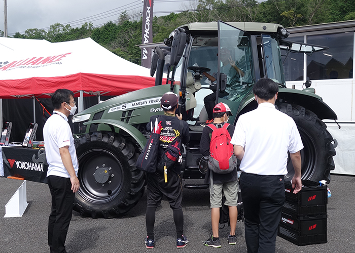 横浜ゴム(株)は、エム・エス・ケー農業機械(株)との共同企画でMF5713Sに深緑色でマット調の新素材でカラーラッピングを施したデモカーをモータースポーツイベントで展示し注目を集めた。岩手展のMSK小間内での展示を予定する。同社では当初、国際農機展㏌帯広で自社ブース内にデモカーを展示するべくMSKに話を持ち掛け賛同を得たことから共同企画として立ち上がった。同社が参加するモータースポーツのイベントに展示することで農家や一般関係者のみならずグループ内での訴求効果を向上。またヨコハマの存在や活動、ALLIANCEブランドの認知度向上すると共にSNSの活用による一般タイヤも含めたブランド力向上に向けた相乗効果を図ることが目的。