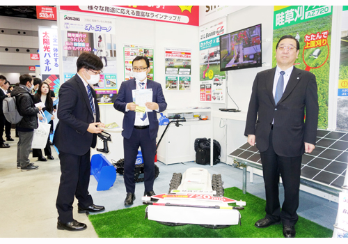 スマートエネルギーWEEK春2025が2月19日~21日の3日間、東京ビッグサイトで開催された。エネルギーに関する7つの展示会に1600社が出展し、3日間で6万8千人が来場した。PV EXPOでは、ササキコーポレーションが電動リモコン作業機「スマモ」や充電式電動ラッセル除雪機「オ・スーノ」を展示・実演走行。スマモは太陽光パネル下や際刈・畔草刈などさまざまなシーンに対応するアタッチメントとともに低所・狭所でもしっかりと草刈りができる性能をアピール。サンエイ工業は今年6月に国内販売開始予定のEVラジコン草刈機「MOWRATOR(モアレイター)S1」の実機を展示した。ホンダは水素・燃料電池展で、2027年に量産開始予定の次世代燃料電池や開発中の燃料電池定置電源のモジュールを世界初公開した。クボタは脱炭素経営EXPOに出展し、農業由来のJ―クレジットや農業脱炭素コンサルティング、農業経営の課題解決をサポートする営農支援システム「KSAS」を紹介した。バイオマス展では諸岡が未利用材の木質バイオマスシステムを映像や資料展示で提案。その他、レインボー薬品、フェイガー、ミルウォーキーツール・ジャパンなども出展した。