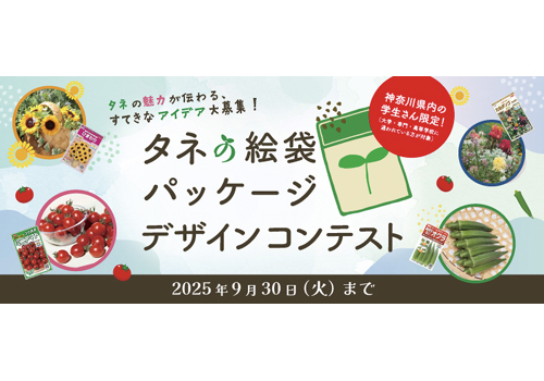 (株)サカタのタネは、神奈川県内の大学・専門学校・高等学校に通う学生を対象とした「タネの絵袋パッケージデザインコンテスト」を開催している。これは、同社が出展予定している「2027年国際園芸博覧会(GREEN×EXPO2027)」が地元横浜市で開催されることを記念して実施するもので、「タネと人の関わり」を募集テーマに掲げている。