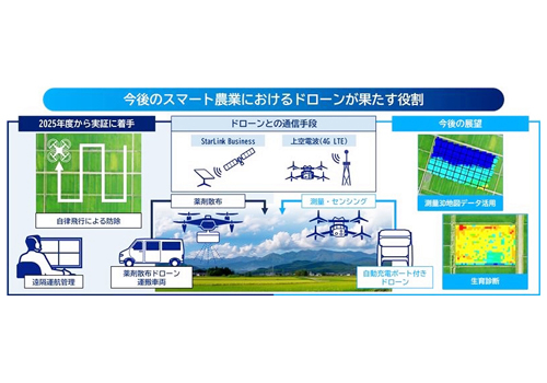 JA全農とKDDI(株)、KDDIスマートドローン(株)は、6月24日、農作業の労働生産性向上と農業の持続的な発展を図るため、自律飛行型ドローンを活用した事業検討について基本合意書を締結した。3者は、自律飛行型ドローンを活用した農業分野におけるサービスを組合員や農作業受託事業者などに提供する。そのためにまず、水稲を対象にした遠隔防除受託サービスについて、今年度から実証に着手する。広く連携パートナーを募り、複数ドローンメーカーの遠隔運航管理を確立し、農業分野での標準規格とするべく、2027年度までに事業化を目指す。