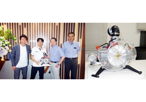 (株)協同は、排気量80CCのゼノアホビーエンジンG800BPUをベースとするハイブリッド型パワーユニットを鋭意開発しており、先般開催のジャパンドローンショーで展示し注目を集めた。この水平対向2気筒エンジンは、各ピストンの振動を反対運動により相殺することで①小型かつ高出力②長時間稼働に必要な耐久性③ドローン搭載時の振動・重量バランスを最適化。それに発電機能を付加している。斉藤剛史副社長によると「もともとチェンソーや刈払機など〝過酷な現場でも稼働し続ける耐久性と高い機能性〟が必要とされる現場でのプロ用の機械として鍛えられたエンジン哲学と技術を継承している点が、ホビー用途に起源を持つ他社エンジンとの設計思想で大きな違いがある。