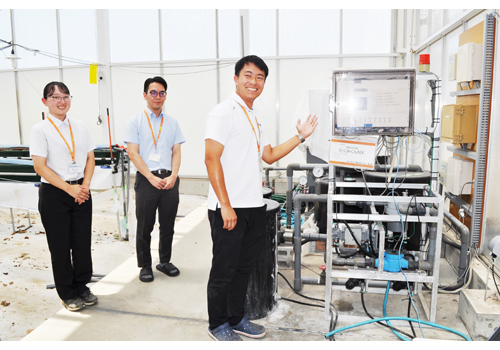 (株)誠和は7月22日、販売を開始したスマート農業を推進するかん水管理製品3種の発表会を同社本社で開催した。冒頭、あいさつに立った商品開発部の杵渕覚部長は、「本日発表するのは給液関係の商品になる。いわゆる土を使わない栽培の中で当社は長らくロックウール栽培に関する装置の販売を手がけてきた。昨今の農家さんのやり方、技術的革新も含め大きく変化してきている中で、私たちもメーカーとして新しいやり方に対応できる商品を作らないといけないということで今回の商品の発表に至った」と説明した。