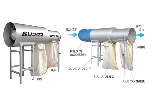 笹川農機、SDリンクス集塵装置~乾燥機ゴミを2段階で収集