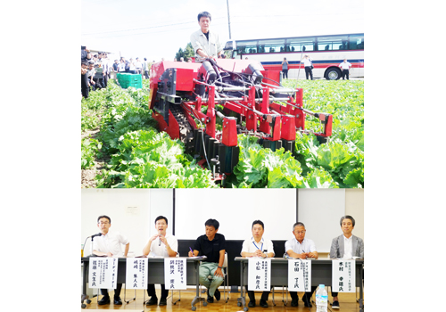 野菜流通カット協、現地検討会を長野で開催~デリカのレタス収穫機を実演