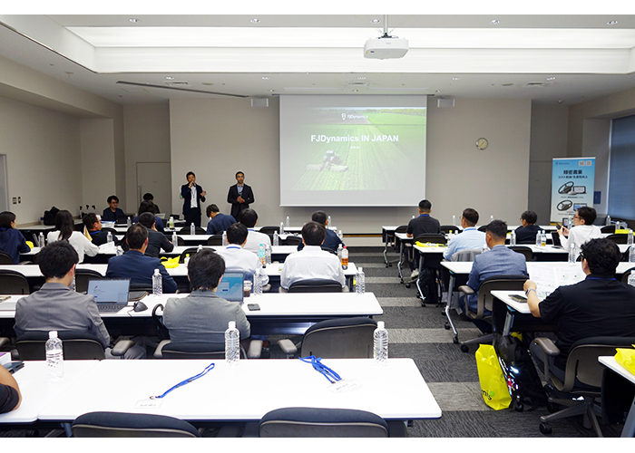 (株)FAGとFJDynamics(シンガポール、以下FJD)は1日、第2回FAG代理店研修&懇親会をクロス・ウェブ幕張で開催した。当日は全国の代理店など65人が参加した。FJDのスパーキーVPは、その中で高い開発力で実現した精密スプレーヤーやISOBUS対応、そして新興の同業メーカーにはない汎用性・拡張性を示し、総合力や優位性を活かした展開を今後も行っていきたいと話した。冒頭、木伏社長は「2020年の発売から4年、現在では全国各地で『使えるもので役に立つもの』として認知が広まりました。反面、農業WEEKでも自動操舵メーカーが多数出展するなど攻めてきています。今回は新商品技術のみならずユーザー使用事例も広く紹介したい」と挨拶した。
