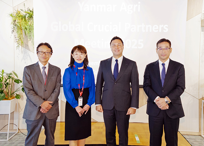 「Yanmar Agri Global Crucial Partners Meeting 2025」が14日、東京都中央区八重洲のYANMAR TOKYO 14階で開催された。ヤンマーのアグリ事業を支える海外の代理店、販売店が一堂に会する初の会合で、世界17カ国から120人が参集した。開会にあたり、ヤンマーホールディングス(株)の山本多絵子CMOが挨拶し「地域のマーケティング活動や販売促進に日頃からご尽力いただき、心より感謝を申し上げます。皆様の多大なご支援ご協力によって、私たちの製品は世界中の多くのお客様に受け入れられている。2025年は原材料価格の高騰による物価上昇が続く一方で、農業分野では気候変動や人口増加に伴う食料需要の増大が大きな課題となっており現在、市場、経済や貿易における不確実性は、アメリカ合衆国による追加関税の導入により一層激化している。このような不安定な状況にもかかわらず、お客様が直面する課題に真摯に取り組み、その解決に向けて努力されている皆様に、改めて心より感謝を申し上げます」と深謝した。ヤンマーアグリ(株)の所司ケマル社長は「現在のヤンマーグループのネットワークは全世界でグローバルにビジネスを展開しており、2023年度に1兆円の売上を達成し、昨年の2024度もほぼ同じ売上で、ヤンマーグループとして本年度はさらに拡大する目標を掲げている」とヤンマーグループ全体を紹介した。