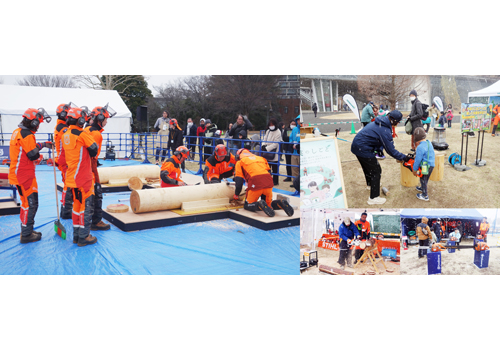 東京都は「山しごと体感フェスティバルWoody Wonder World」を7日~8日、立川市の国営昭和記念公園ゆめひろばで初めて開催した。初日は降雪に見舞われるなど悪天候、2日目は中止となったものの、初日は盛り上がりを見せた。会場では東京都の林業会社である木林士による伐木チャンピオンシップの競技種目を実演。やまびこジャパンはエンジンチェンソーの展示の他、バッテリーチェンソーを使っての伐倒競技体験、また小型のミニチュアチェンソーや防護服を用意してのなりきり撮影も。ハスクバーナ・ゼノアは大小チェンソーの展示やオートモアを実演。橋本機械はスチール製品を展示。世界最大のチェンソーや家庭用~プロ用のバッテリー製品を展示。