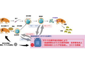 農研機構はこのほど、喪失が加速化するブタ遺伝資源を保護するためのブタ卵子の〝ガラス化保存法〟を改良。ブタ未成熟卵の発生率で2倍以上の引き上げに成功したと発表した。これまで30%程度であった未成熟卵のガラス化保存後の生存…