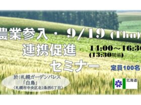 北海道農政部農業経営局は9月19日午後2時~4時半、札幌市中央区の札幌ガーデンパレスで「農業参入・連携促進セミナー~農業という北海道の強みを如何に使うか」を開催する。農家戸数が減少する中、北海道では民間企業の農業参入を…