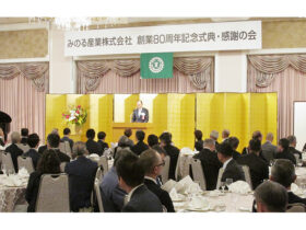 みのる産業(株)は10日、「創業80周年記念式典・感謝の会」を岡山プラザホテルで開催し、同社の役員・社員、北海道から九州まで200社におよぶ得意先、特約販売店や協力会社など関係者250人が出席して佳節を祝った。式典の冒… -